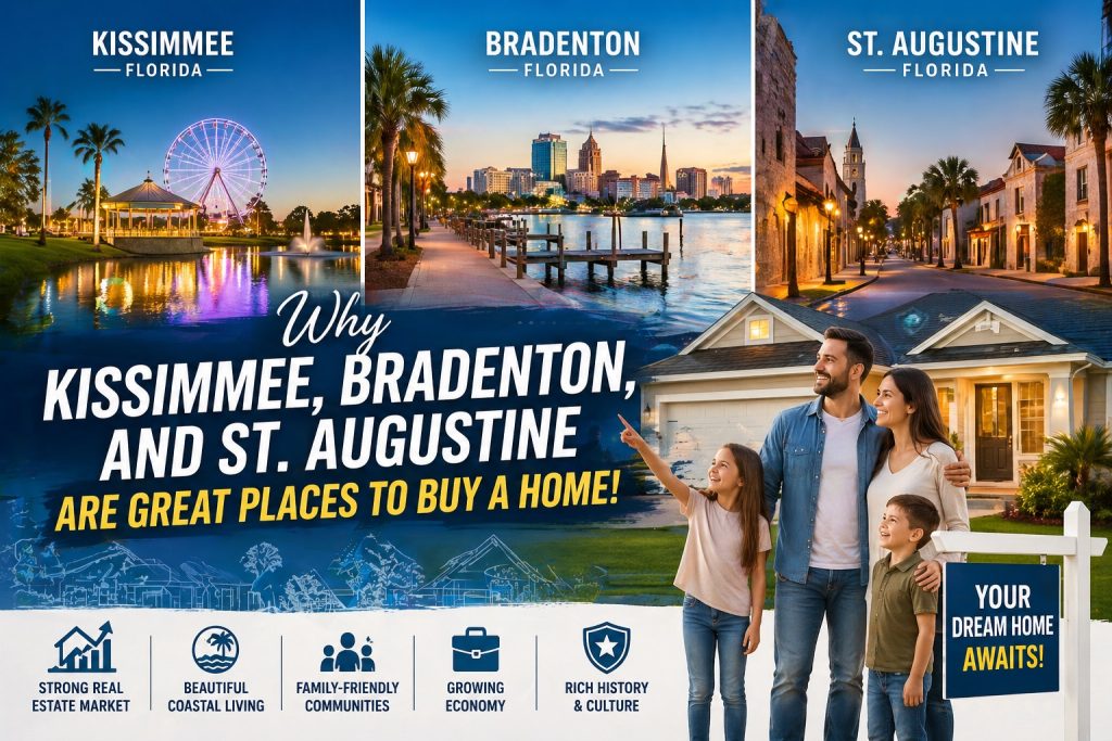 All of it ultimately depends on your preferences, lifestyle, and budget. Kissimmee, Bradenton, and St. Augustine each offer distinct advantages for homebuyers, from Kissimmee’s affordability and investment potential near major attractions to Bradenton’s coastal charm and St. Augustine’s unique historic ambiance. The real estate market in each city is somewhat competitive, but there are still plenty of opportunities for buyers to negotiate deals, especially as home prices continue to adjust. With a little patience and research, these three cities could be the perfect place to find your dream home in Florida’s ever-evolving housing market.